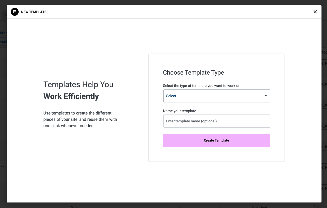 Step 2 - Click on the "Add New" popup to create a new template for display. Please enter the name, select the type of your template and then click "Create Template."