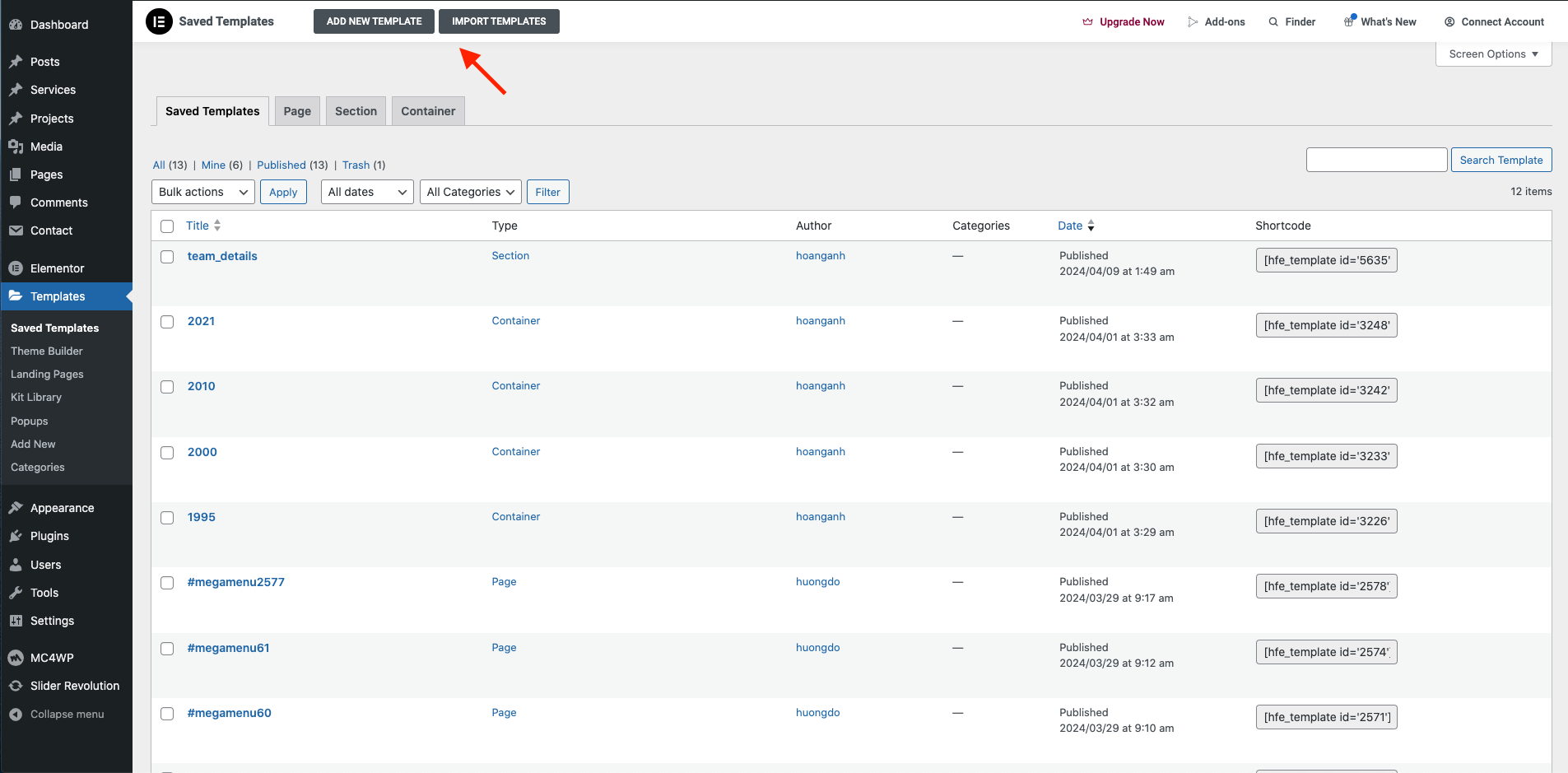 Step 5 - Choose the tab My Template and you can add the template that has been created to the page.